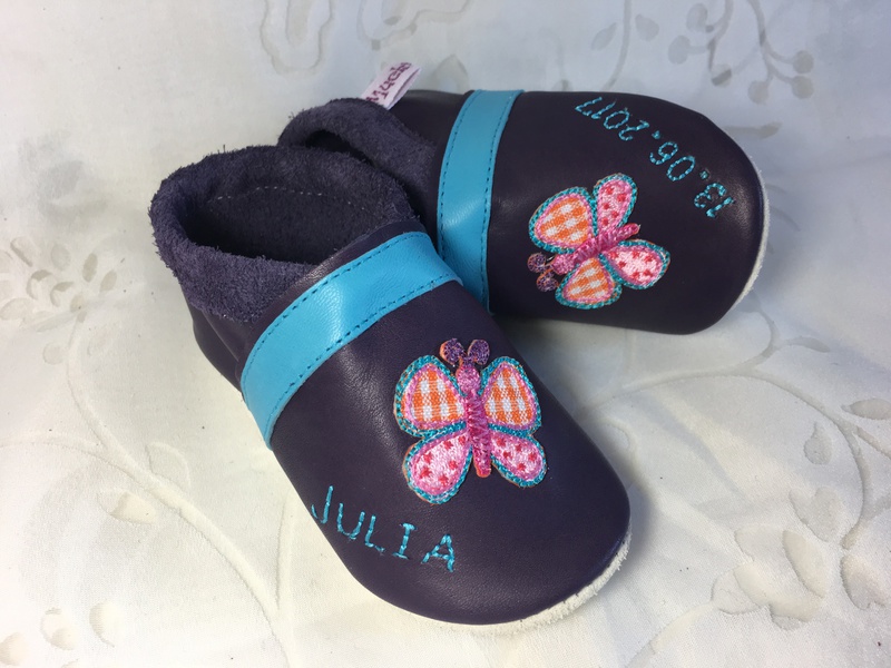 Hier findest Du Beispiele für personalisierte Muckishoes mit Namen oder Schriftzug.